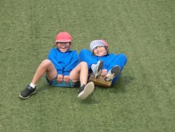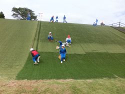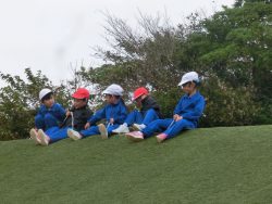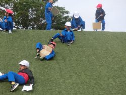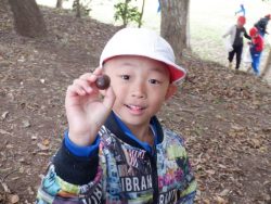 落ち葉や木の実を拾って秋探しをしたり、芝滑りをしたりしました。
