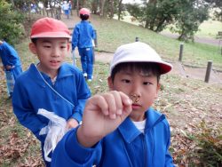10月23日(木)1,2年生校外学習\(^_^)/1,2年生が生活科の校外学習で、鹿島灘海浜公園へ行ってきました。 落ち葉や木の実を拾って秋探しをしたり、芝滑りをしたりしました。 子どもたちは、今日、拾ったどんぐり等を使って、生活科で、おもちゃ作りをします! おもちゃ作りに夢中になる子どもたちの笑顔が目に浮かぶようです。