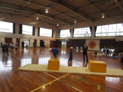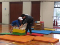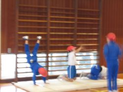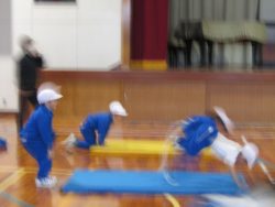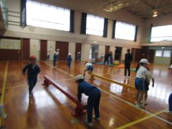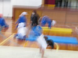 低学年が体育で、からだつくり運動を行いました。