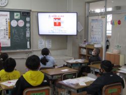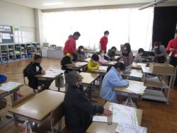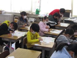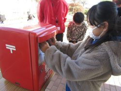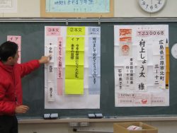 12月12日(金)年賀状の書き方の授業郵便局の局長様を講師にお迎えし、3年生が年賀状の書き方や実際にどのように年賀状が運ばれていくかについて教えていただきました。