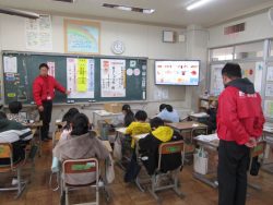 郵便局の局長様を講師にお迎えし、3年生が年賀状の書き方や実際にどのように年賀状が運ばれていくかについて教えていただきました。