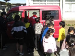 実際にポストをもってきてくださり、郵便車まで登場しました。