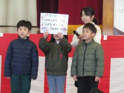 また、児童会のあいさつがありました。 児童会中心に顔晴る笑顔の輝く1年になりました。