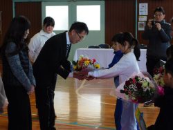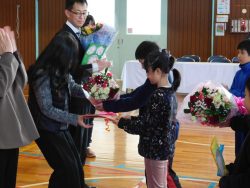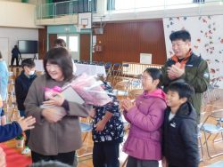 児童会主催で今年度で退職する先生、役職定年をする先生の卒業式をやっていただきました。