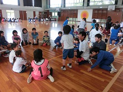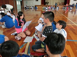 1年生から6年生までの「たて割り班」の活動が始まります。今日は、初顔合わせ。自己紹介をして、活動の確認をしました。6年生の班長、副班長がしっかりとリードしていました。