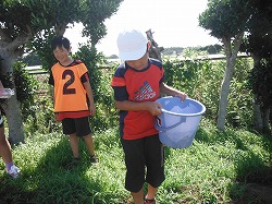 朝から暑い日です。児童朝会は縦割り班で,「ひまわり」の世話をしました。