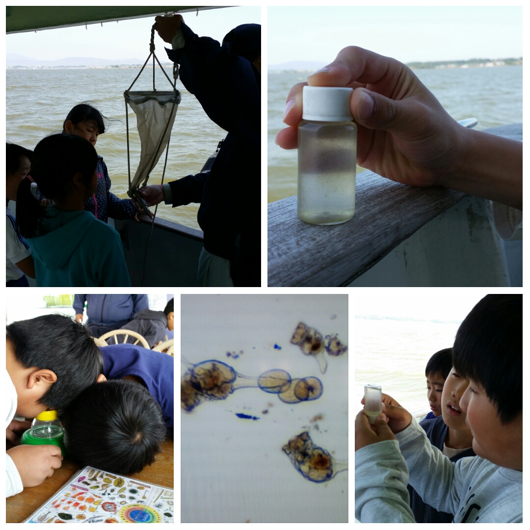 採集したプランクトンを観察。肉眼でも見えました。ミジンコなどが動物性のプランクトンが動く様子がよく見えました。感動です❗
