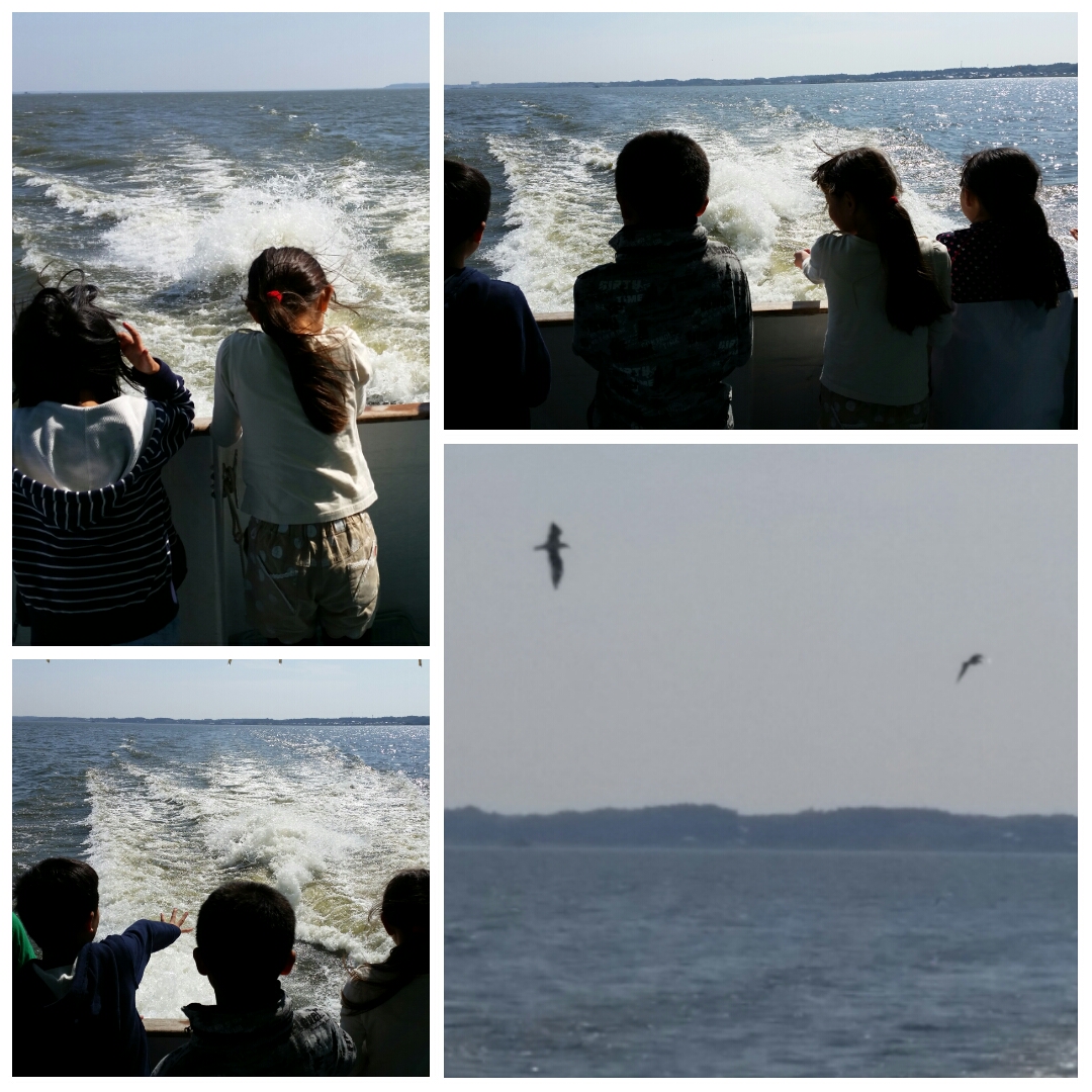 走る船から、エサを投げると、ゆりかもめか寄ってきます。 かなり大きな魚が跳ねるところも、見られました😂 写真には取れませんでしたが,レンギョの「ハクレン」のようです。子供たちもジャンプするのを見て,「ああ! 見た見た!」と喜んでいました。