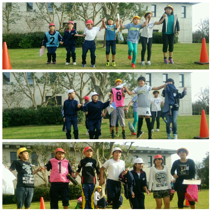 オリエンテーリングのグループがどんどんゴールしてきます。🏃💨 最後は全員で手をつないで❗ いっきに、友達ですね。😆