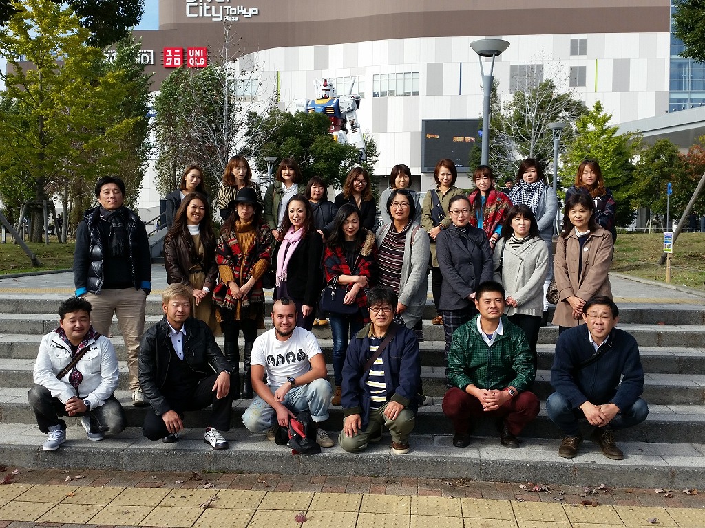 午後、ダイバーシティに到着。記念にパチリ📷 背景に、ガンダムが立っています。みえますか?🗿 このあとは、フリータイム。さて、みなさん、何を食べ、何を買うのでしょう?