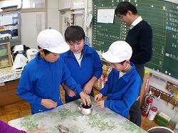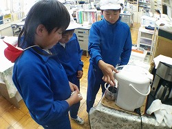 手にしていたのは,昨日の「森の学校」体験(水郷県民の森)の際に自分たちが味わった「せんぶり」です。( ゚Д゚) どうやら,自分たちが味わったあと,案内をしてくれた森の先生に「教頭先生にぜひ飲んでほしいので,ください」ともらってきたらしいのです。なかなか気が利きます。(*_*) 職員室の茶道具を使って,丁寧にいれてくれます。