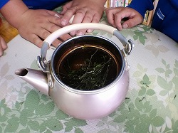 で,結局は,先生たちにすすめた自分たちも「せんぶり茶」を飲むことになった子供たち。自業自得です。N.Hさんは,飲んだ1秒後に「にがい~~!」と叫んでいました。