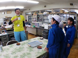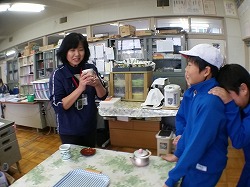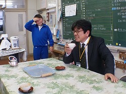 教務のT先生,校長先生にもすすめました。「いや,にがい!」と思わず声がでます。子供たちは嬉しそうです。「これは,胃にいいそうです」と説明しています。(ちなみに,発毛にもいいそうですよ。(‘◇’)ゞ)