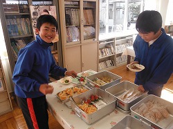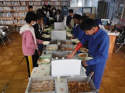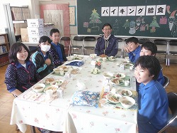 今日,6年生はバイキング給食です。(*^^)v みんな楽しみにしていた日です。本校だけでなく,鉾田市内の小中学校では6年生と中学3年生が一斉に「バイキング給食」を楽しみました。