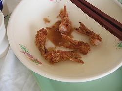 エビフライのしっぽばかりが5匹分。これは児童会長のH.Yさんです。おにぎりも4個食べたとか。いやはや。