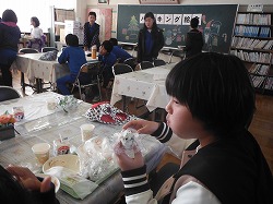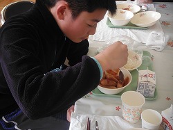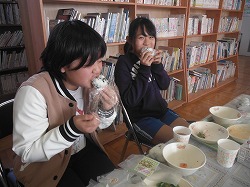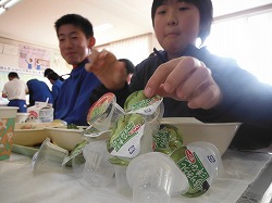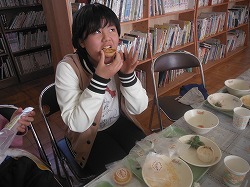この2人の男子。K.YさんとY.Hさん。ともに「すりおろしゼリー」にはまりました。あまり取る人がいなかったのか,大量に残っていたゼリーを片っ端から食べて(飲んで)いました。K.Yさんの24個に対して,Y.Hさんが26個。ふたりで50個です。( ゚Д゚) いやはや。このあと,少し苦しそうでしたが・・・。