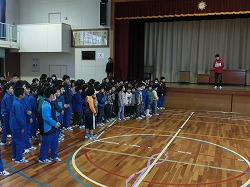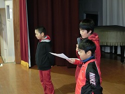 表彰に続いては、児童会による〇☓クイズ大会です。児童会が、委員会の時間に自分たちでクイズを作って準備してきました。