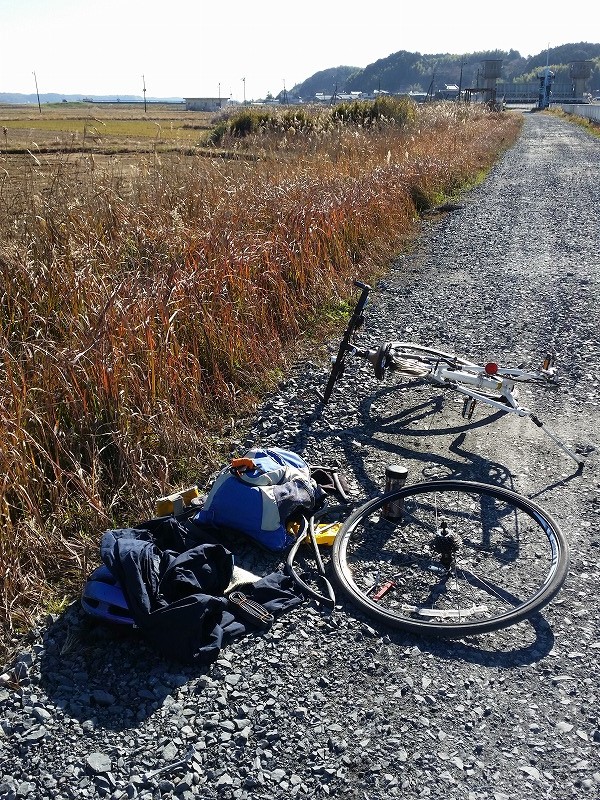 ▼ちなみに,校長は「ほこたハーフマラソン」を応援したあと,北浦湖畔を自転車でツーリングしようとしましたが,砂利道が出現してあえなくリア(後ろ)のタイヤがパンク。”(-“”-)” 手持ちの替えチューブですぐに交換修理をしましたが,やる気をくじかれたので短いルートでツーリングを終えました。((+_+)) いやはや。