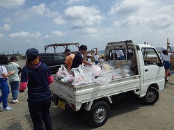 写真は7月に行った5年生による海のゴミ拾いです。軽トラックにいっぱいのゴミが集まりました。