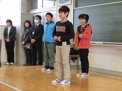 三学期への思いを2,4,6年生の代表が述べました。全員,原稿を見ることなく,「目標が3つあります。1つ目は・・」というように,しっかりと頭の中で構成して話すことができました。