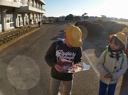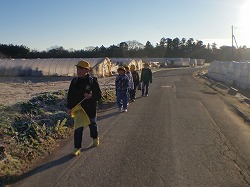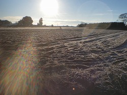 今朝の旭南小学区の畑には霜が降りて,一面が白くなっていました。朝日が当たって,輝いている感じです。こういう冬の朝の畑の風景が好きと「100マス作文」に書いたのは,6年生のI.Rさんでした。12月25日にブログ紹介したものです。
