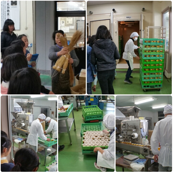 5年生の校外学習、今日はまず、水戸の天狗納豆工場の見学です。 カップの納豆のほかにも、わらつと納豆も作っています。