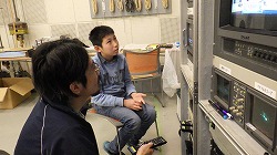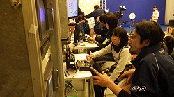 ▼こちらは,アニメーションを操作するところ。手元のレバーやボタン操作で,台本にあわせて動かします。「うまいね~」と褒められていました。