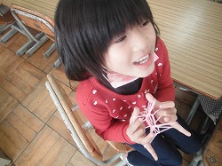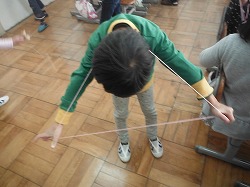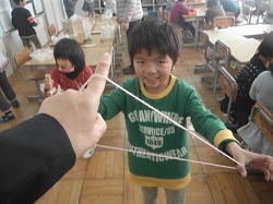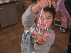 ▼「あやとり」です。担任のS先生が全員分を用意しました。ぱっぱと見事に指を動かして,あっという間に「カメ」を作ったのは,M.Hさん。おみごと!