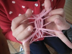 なかには,こんな「あやとり」(?)も! 「三角ができました!」と! T.Yさん。なるほどですね。ちょっと,指でお手伝いもしました。(^o^)/