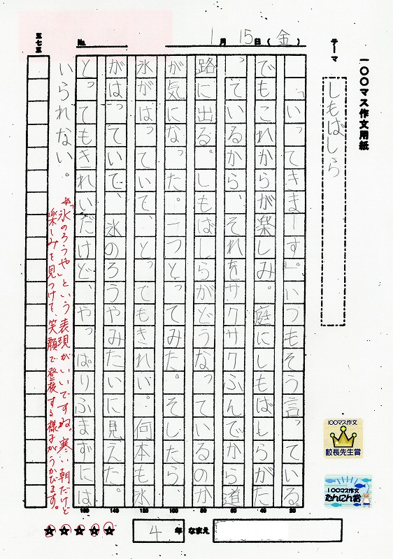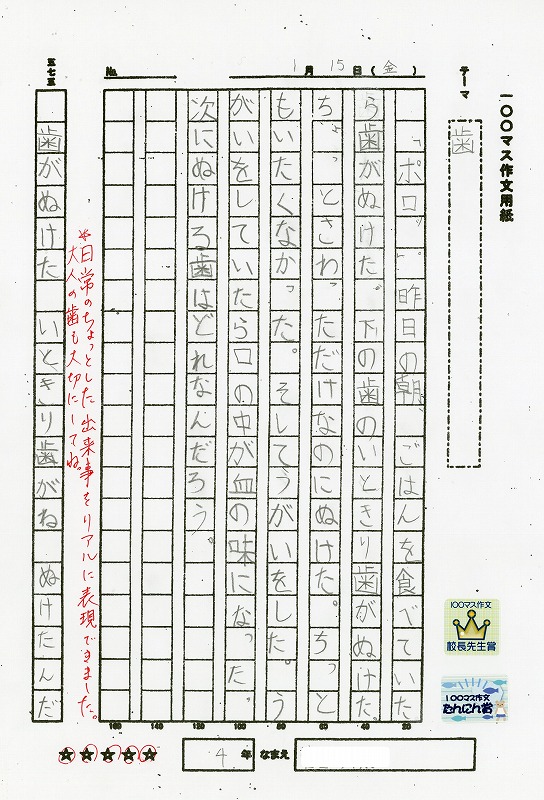 4年生。S.Rさんの「歯」という100マス作文。さて,どんな作文でしょう。紹介しますっ!