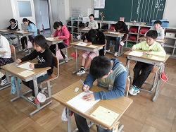 担任のN先生の事前注意を受けて,解答用紙の下に自分の番号を書き込みます。
