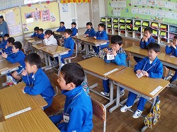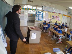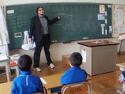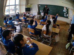 I先生の兄弟姉妹の数を表すのに,簡単な絵で表すと,「えええ~!」と子供たちはびっくり。I先生を入れて,兄弟姉妹は7人! I先生はちょうど真ん中です。大家族なんですね。・・というような説明をするI先生は,もちろん英語! 担任のN先生がちょっと通訳する単語などもありますが,けっこう伝わるから面白いものです。こうして,「英語(外国語)」に接していき,興味をもつことが大事なのですね。(*^^)v
