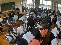 平成28年度のPTA総会は音楽室で行いました。会員の出席率は8割(委任状15含む)を超えています。