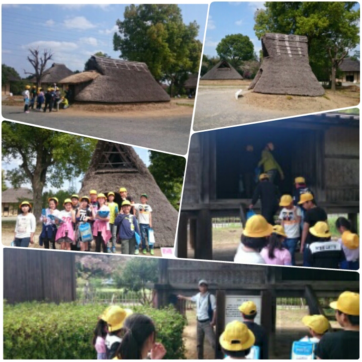午後は,常陸風土記の丘。縄文時代からの住居や「高床式」の倉庫,また江戸時代にいたる住居の移り変わりを学習することができました。実際に中に入ってみると,外から見るよりも広く感じます。高床式の倉庫も,食べ物を守るためにいろいろな工夫がされていることがわかります。
