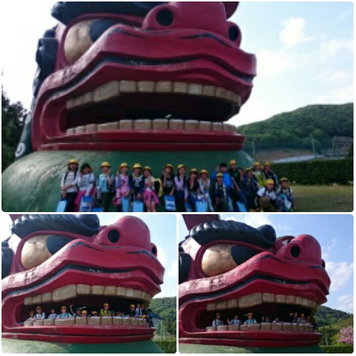 こちらは日本一の獅子頭です。口の中からの眺めは? こちらから見ると,巨大な獅子に食べられてしまう子供たちっていう構図ですけど。