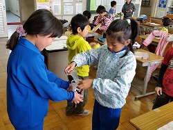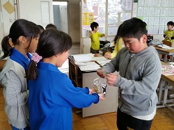 3年生の始業前の教室をのぞいてみました。「募金を持ってきてくれた人はお願いします」と呼びかけます。すると,初日から何人かの児童が持ってきてくれました。