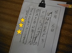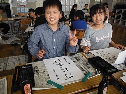 5年生の書写では「ひらがな」を書いていました。ひととおり,五十音を練習した後,好きなひらがな文字の練習タイム。「しろまる」(?)って何? と聞いてみると,「ペットの名前です」とK.Jさん。製菓店の息子T.Sさんは,「おまんじゅうの からあげ はじめました」です。(^o^)丿 あげまんじゅうとはちょっと違う「からあげ饅頭」が発売されるのが楽しみですね。鳥のからあげに似てたりして。(^_-)-☆