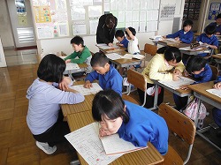 1校時から4校時,学生たちは5~6人のグループになって小学生の学習参観(参加)に入りました。アトランダムに紹介しましょう。