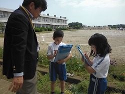 「校長先生! インタビューいいですか?」と,休み時間(中休み)に校庭をうろうろしていると,1年生がやってきました。「はい,どうぞ!」