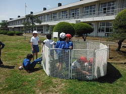 昼休み,サークルに低学年の子供たちがたくさん入っています。
