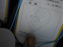 観察したようすを絵に描きます。キャベツの葉に,細かい毛が生えたあおむし,上手に描けていますね。