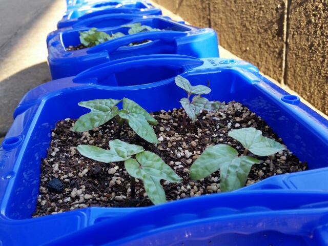 このあさがおは,5月6日,國學院大學栃木短期大学の学生さんたちが授業参加にいらしたときに,「種まき」したものでした。