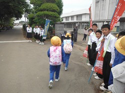 あいさつ運動には,今年の3月に卒業した旭中の1年生も参加。ちょっと気恥ずかしそうにしながらも,先輩としてしっかりとあいさつができていました。小学生も負けないように元気にあいさつをしました。