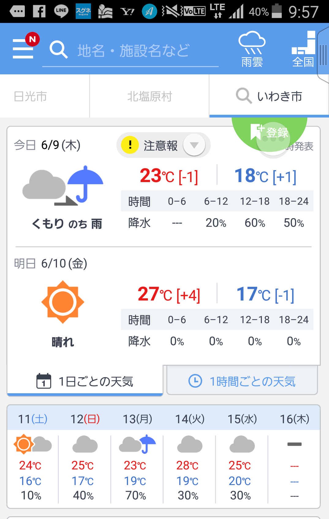 ところで,明日(6/10)の福島方面の天気は? それが気になりますね。「いわき市(小名浜)」の気象情報を見てみると・・・
