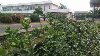 本校舎、職員室前の花壇に「はまゆり」が伸びてきています。「つぼみ」もこんなにふくらんできました。