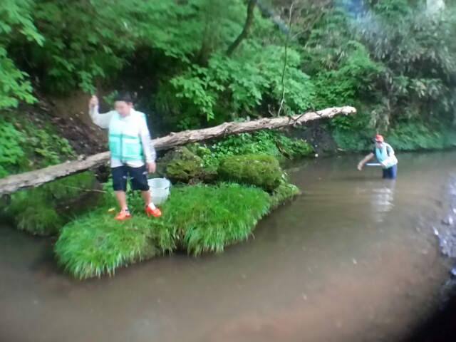 10cm弱のアブラハヤがとんどん釣れます。釣れたあ! とすごく嬉しそうにはしゃいでいる子も。初めて魚をった子も多かったようです。
