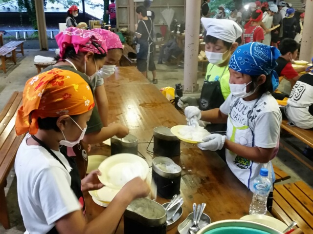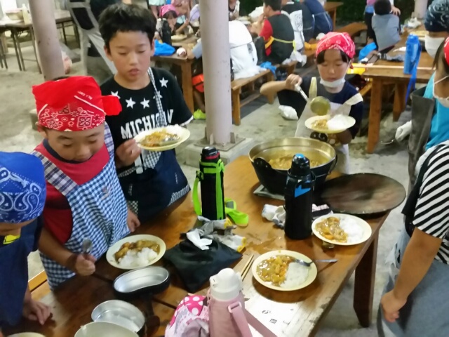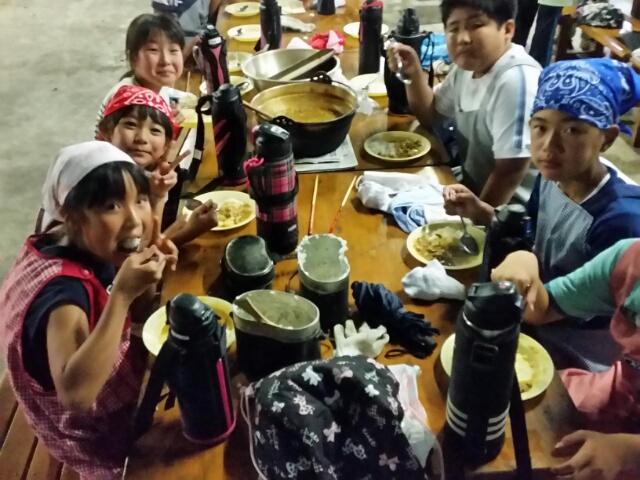 ちょっと焦げたご飯や、ちょっとかためのジャガイモ、ややゆるめのカレー(^-^ゞ でも、とにかく、おいしい😋🍴💕 みんなで苦労して作って、みんなでニコニコしながら食べるカレーライスは、最高⤴⤴