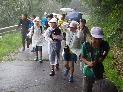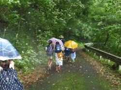 雷雨となった帰り道でしたが,子供たちは川遊びで濡れることにすっかり慣れてしまった後だからなのか,「わあわあ」「きゃあきゃあ」言いながらも,笑いながら歩いている姿が見られました。あまりにとつぜんの大雨に,笑うしかなかったのかもしれません。