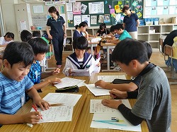 今日から夏休み。・・・ですが,4年生~6年生は「学びの広場」の学習で,午前の2時間,学校で学びました。