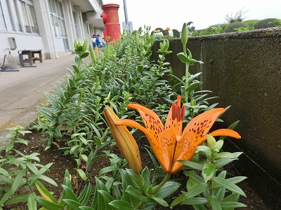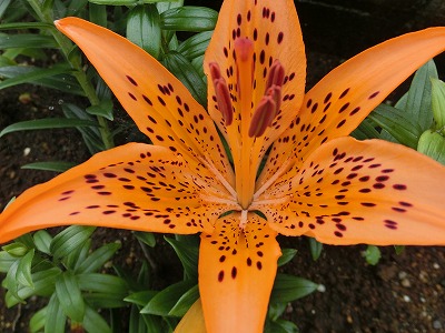 オレンジ色でしっかりとした「はまゆり」ですね。となりにもオレンジがかったつぼみがありますし、大きくなっているつぼみもたくさんあるので、楽しみです。